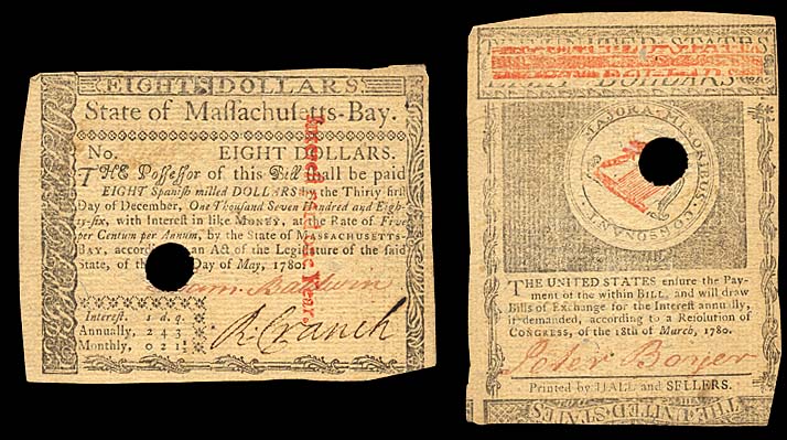 MASSACHUSETTS, 8 dollars P-S1342 5.5.1780 punch