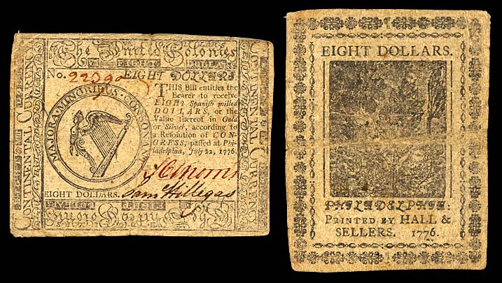 Currency, 8 dollars P-S145 22.7.1776, aF