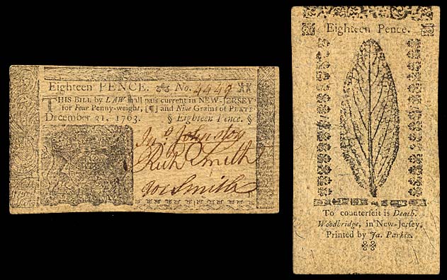 NEW JERSEY, 18 pence P-S1801b 31.12.1763 plate