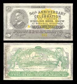 WISCONSIN, Baraboo, Ringling Bros., 5 cents