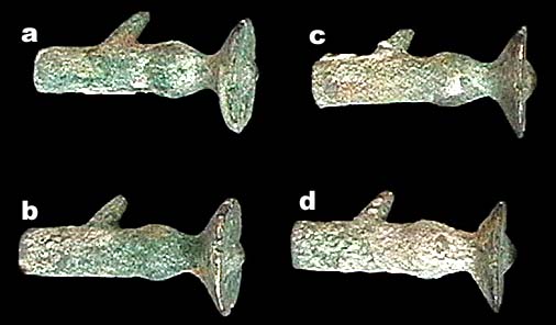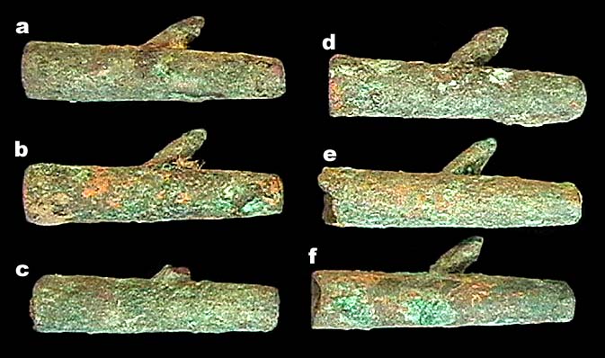 Bronze parasol spoke ends (chang gao). Parasols were evidently standard equipment on chariots at that time, and are often found on battlefields associated with arrows, hence the confusion of these and arrowheads.