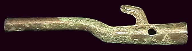 bronze chang gao parasol spoke end, rivet holes at base, 43mm long,
