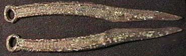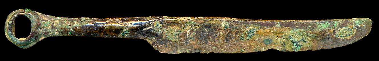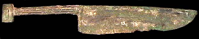 1200 BC, bronze dao knife, 150mm long, curved back, slotted
