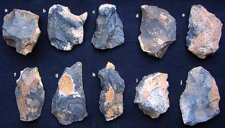 These things are given different names depending on their shape, but the fact of the matter is that their specific uses are conjectural. It is known that these people worked in wood and bone as well as stone, of course, and some of these were probably mounted on handles. Put the side scraper on the end of a piece of wood and it becomes a knife, doesn't it? Functional ambiguity notwithstanding, the authenticity of these things is not in doubt.