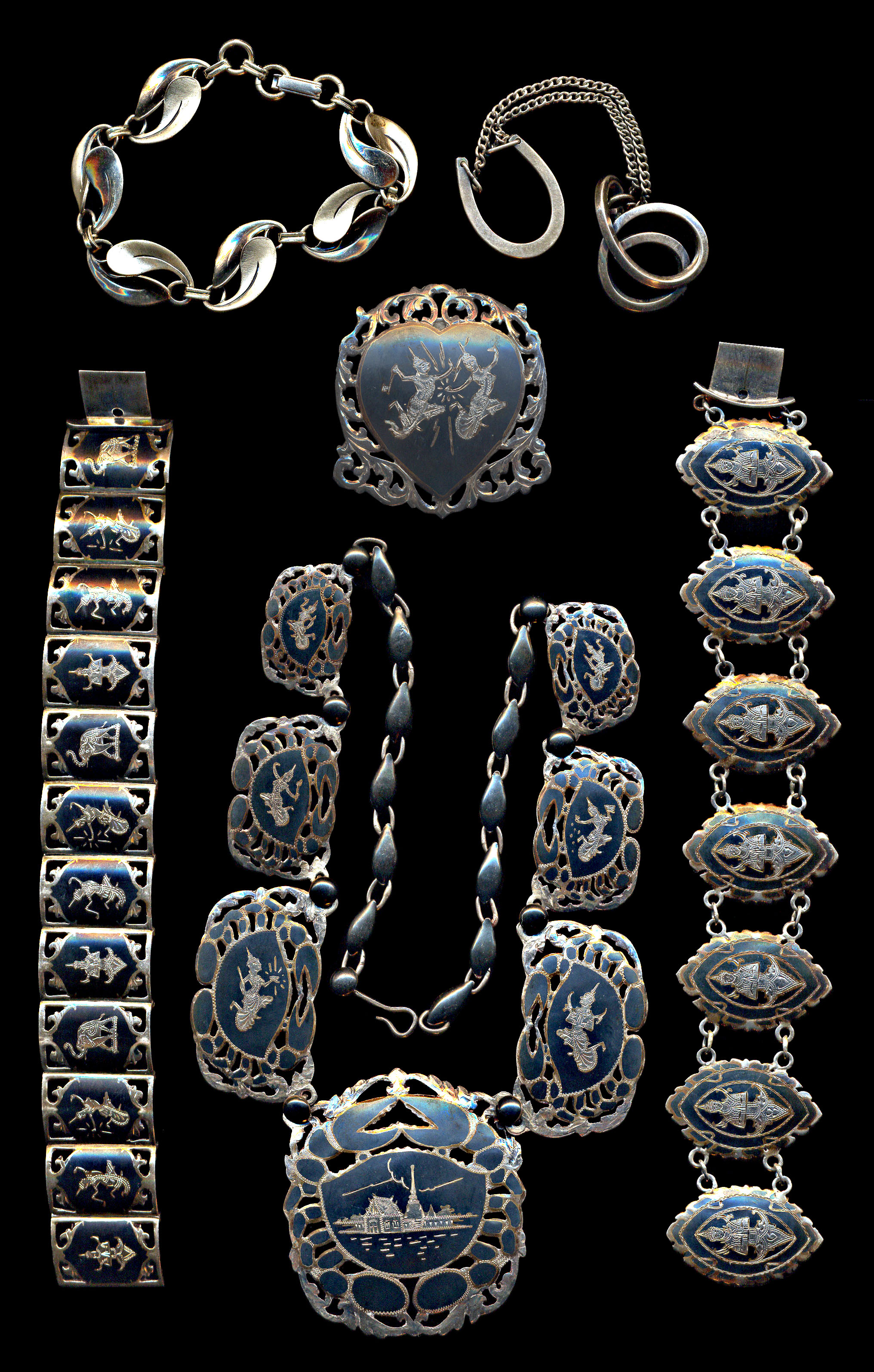 4498 THAILAND, jewelry lot, modern, set of a necklace, 2 bracelets, broach, with