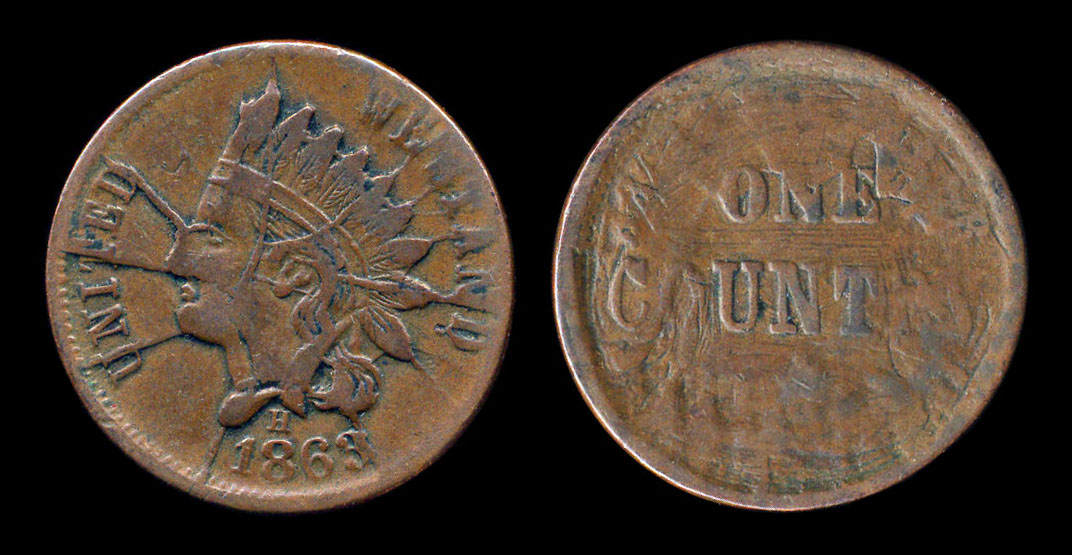 obv., ONE COUNTRY altered to ONE C (O)UNT, also, there is some reverse brockage,