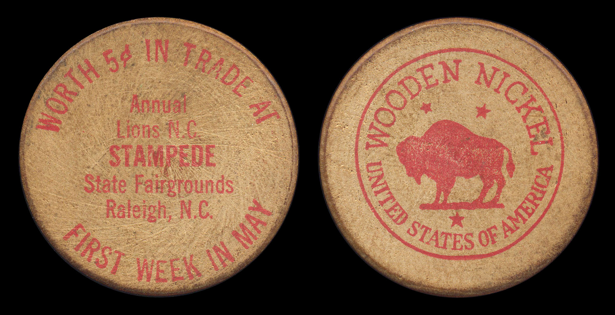 4484 USA, NORTH CAROLINA, token, WORTH 5¢ IN TRADE AT ANNUAL LIONS N.C. STAMPEDE