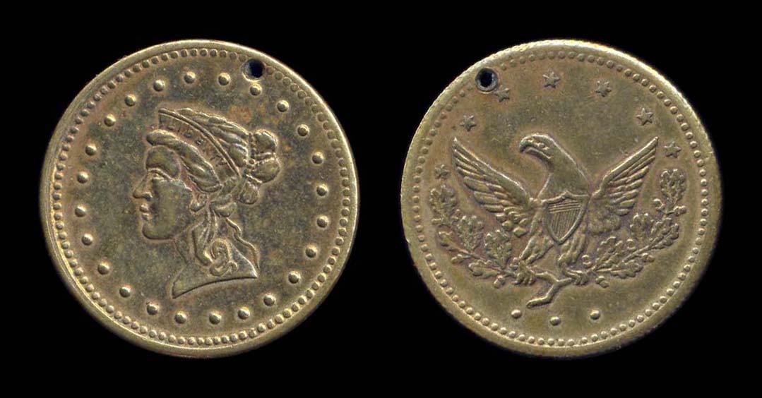 NICKEL UNITED STATES OF AMERICA, wood, black ink, 38mm, VF $15.00