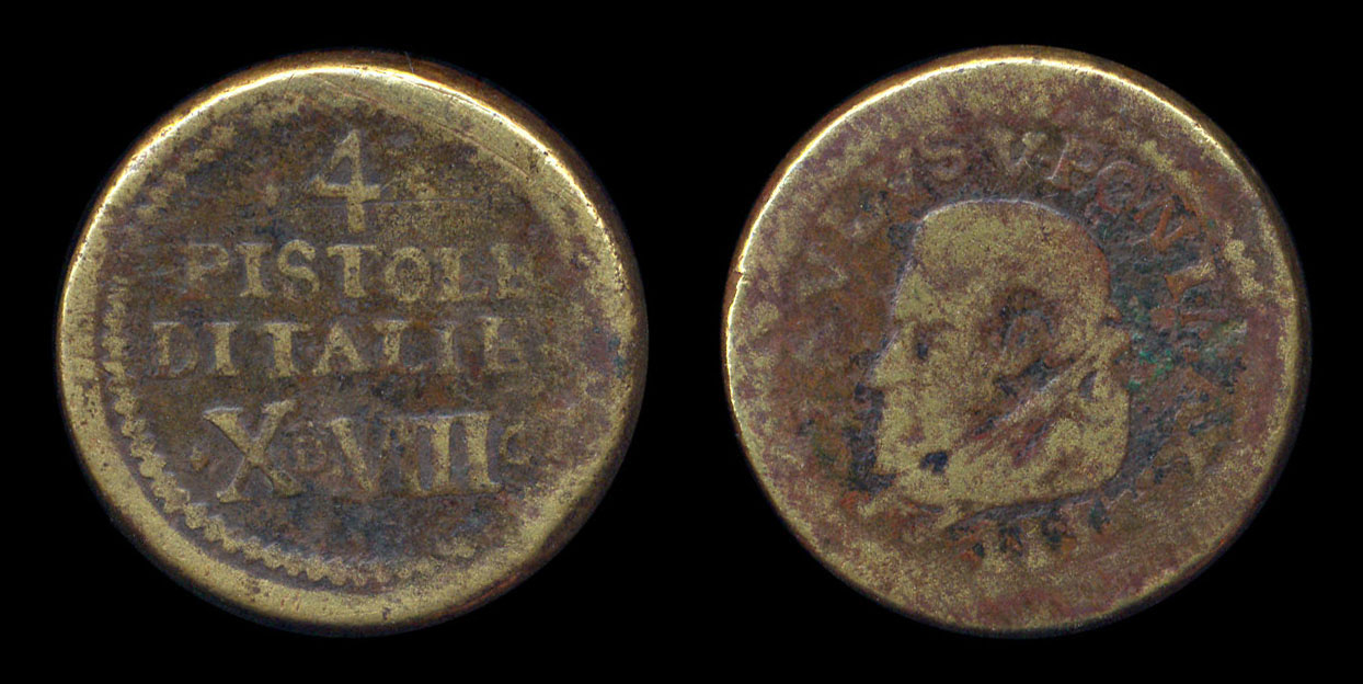 ITALY, coin weight, ND (17-18th c.), 4 PISTOLE DITALIE .XD VIII GR / head L,