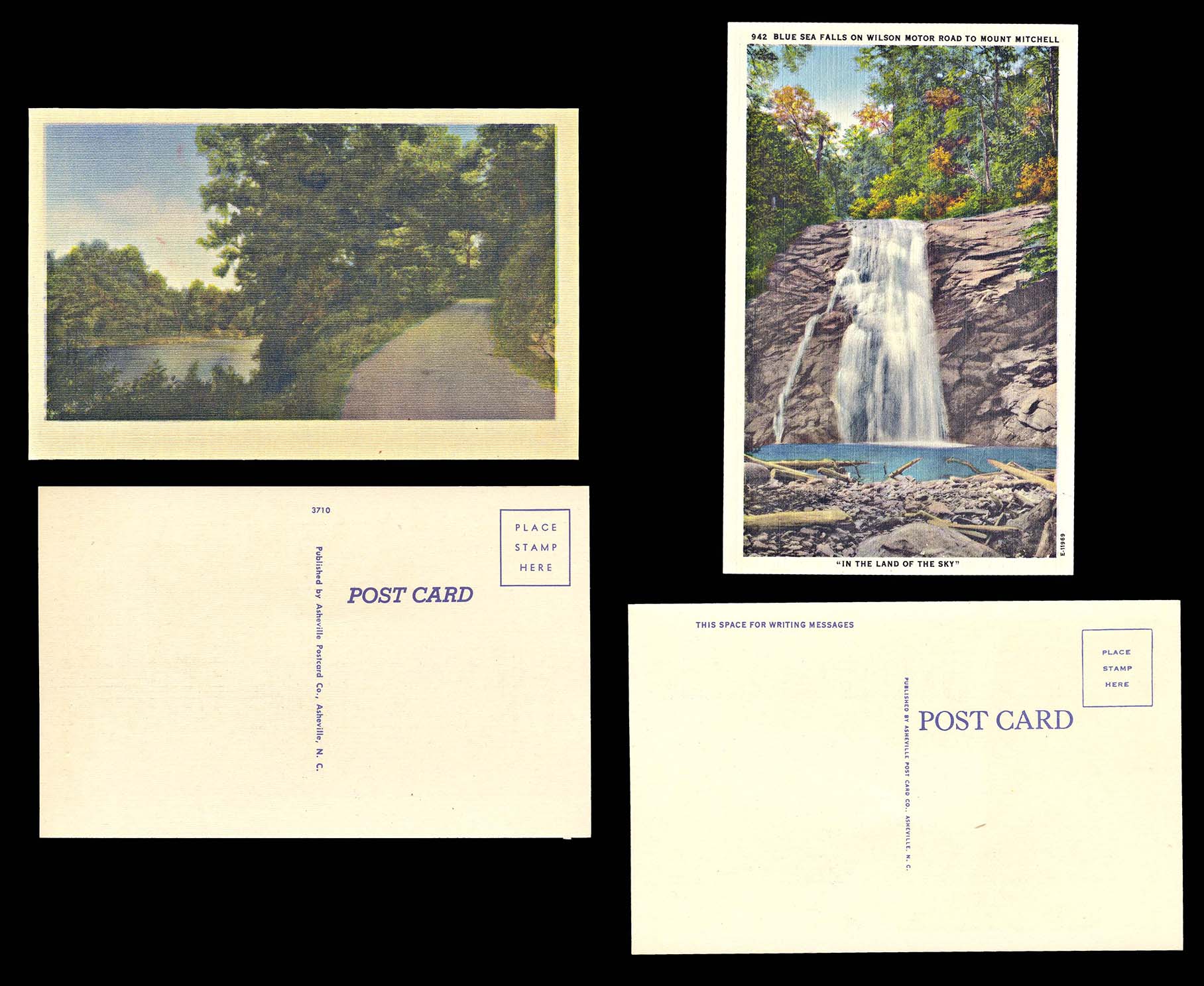 NORTH CAROLINA, postcard lot, ND (1920s) one is a small waterfall, 942. BLUE SEA
