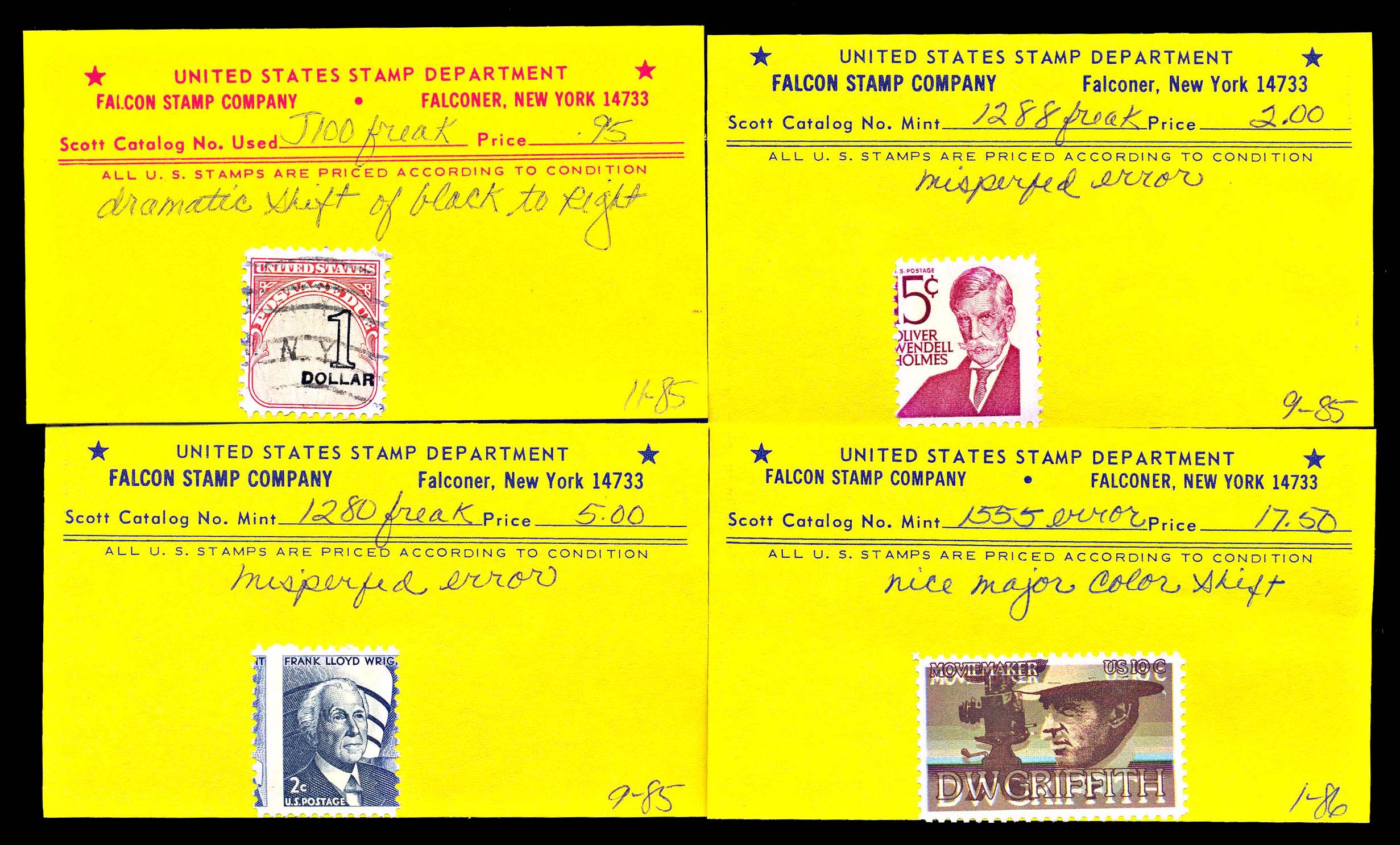 stamp error lot, ND (1960s+) 4 stamps with different errors, unused but pasted